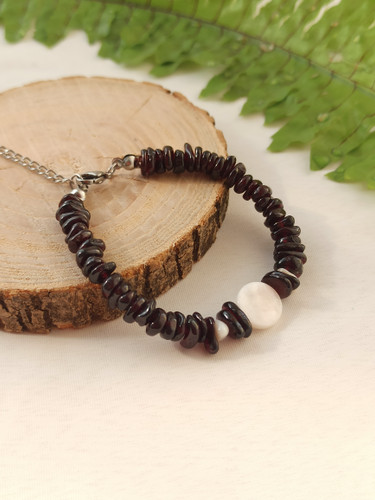دستبند سنگ گارنت طبیعی و صدف، تک نسخه