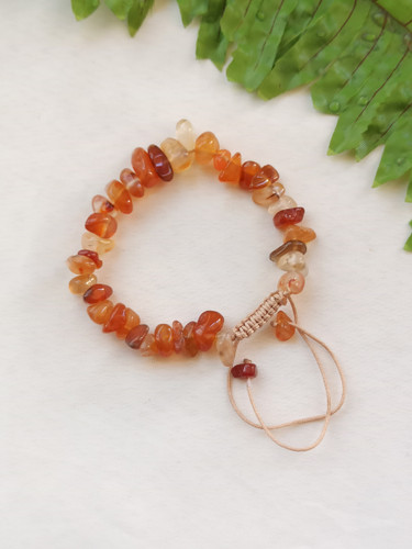 دستبند سنگ عقیق کارنلین چیپسی گره کشویی
