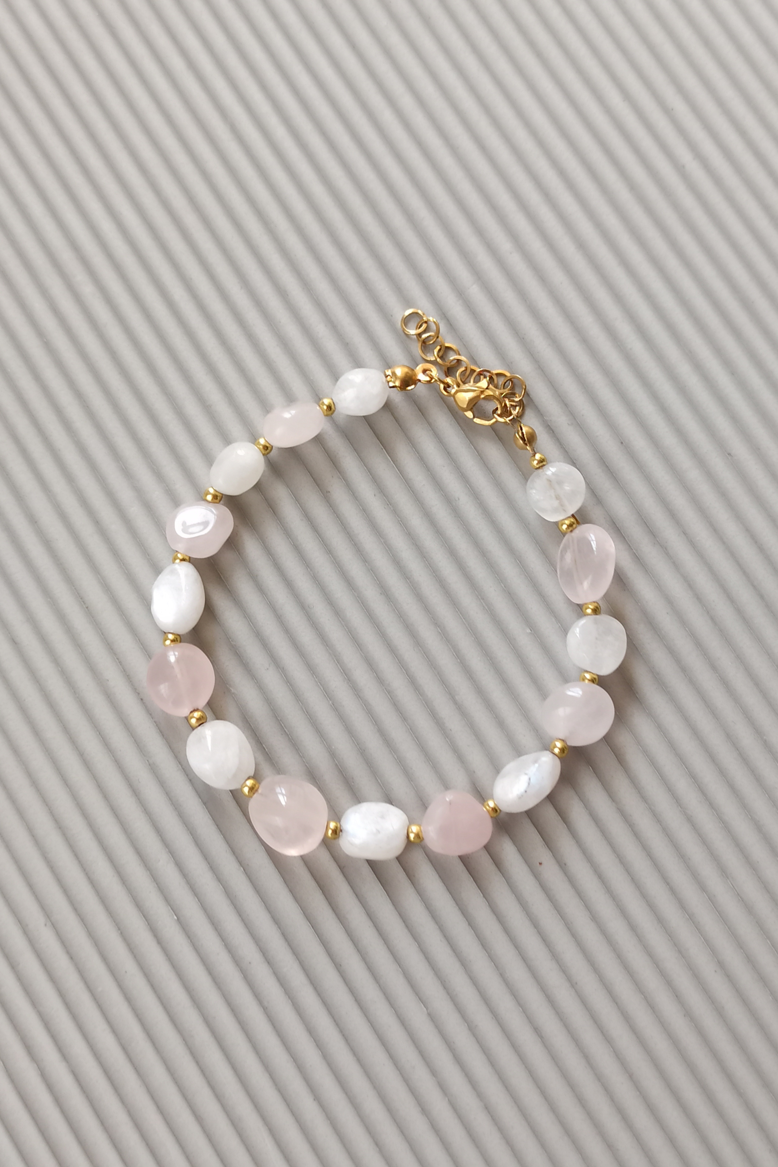 دستبند زنانه سنگ رزکوارتز و مون استون