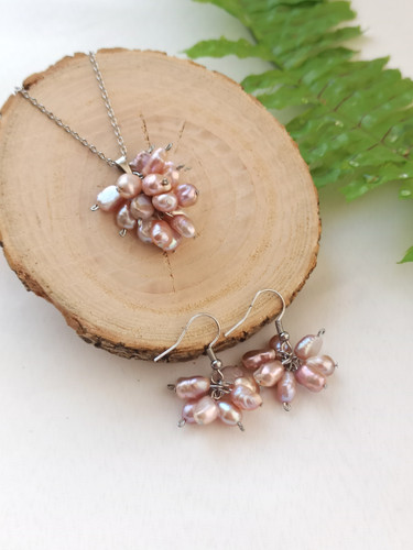 نیمست گردنبند و گوشواره مروارید پرورشی