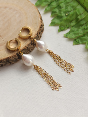 گوشواره آویز مروارید پرورشی اشکی زنجیری