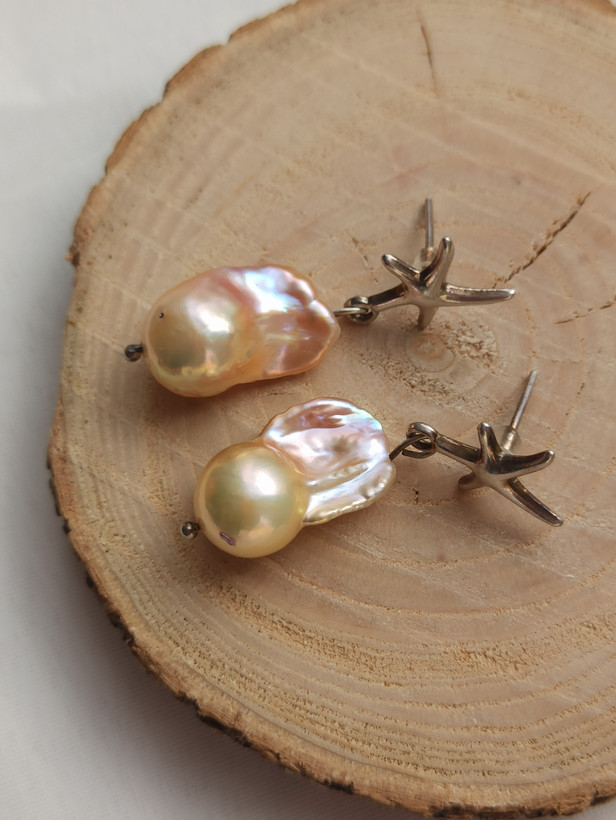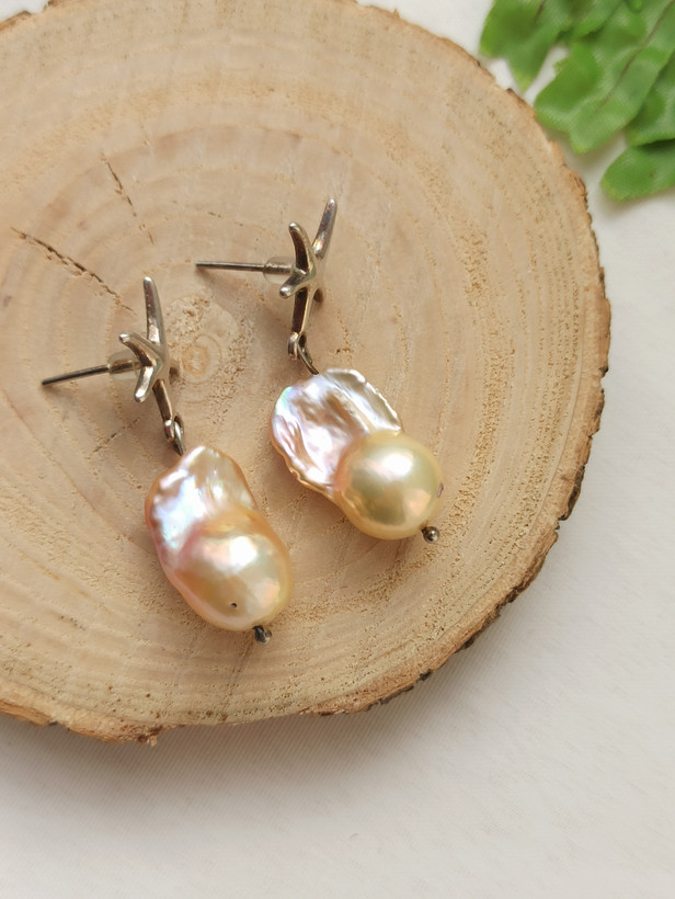 گوشواره مروارید باروک مولتی کالر میخ نقره تایلندی