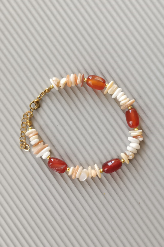 دستبند زنانه عقیق کارنلین و صدف طبیعی
