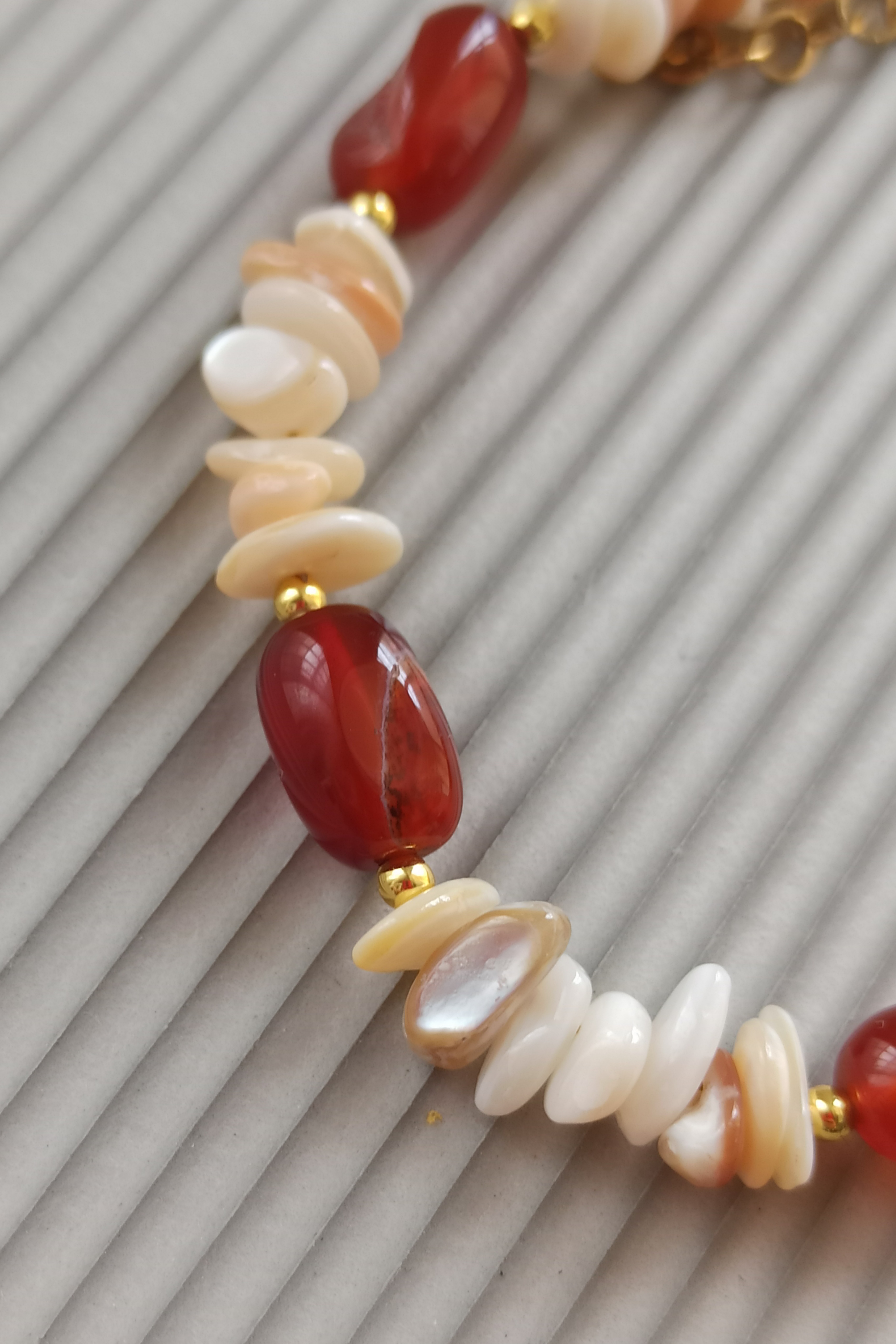 دستبند زنانه عقیق کارنلین و صدف طبیعی