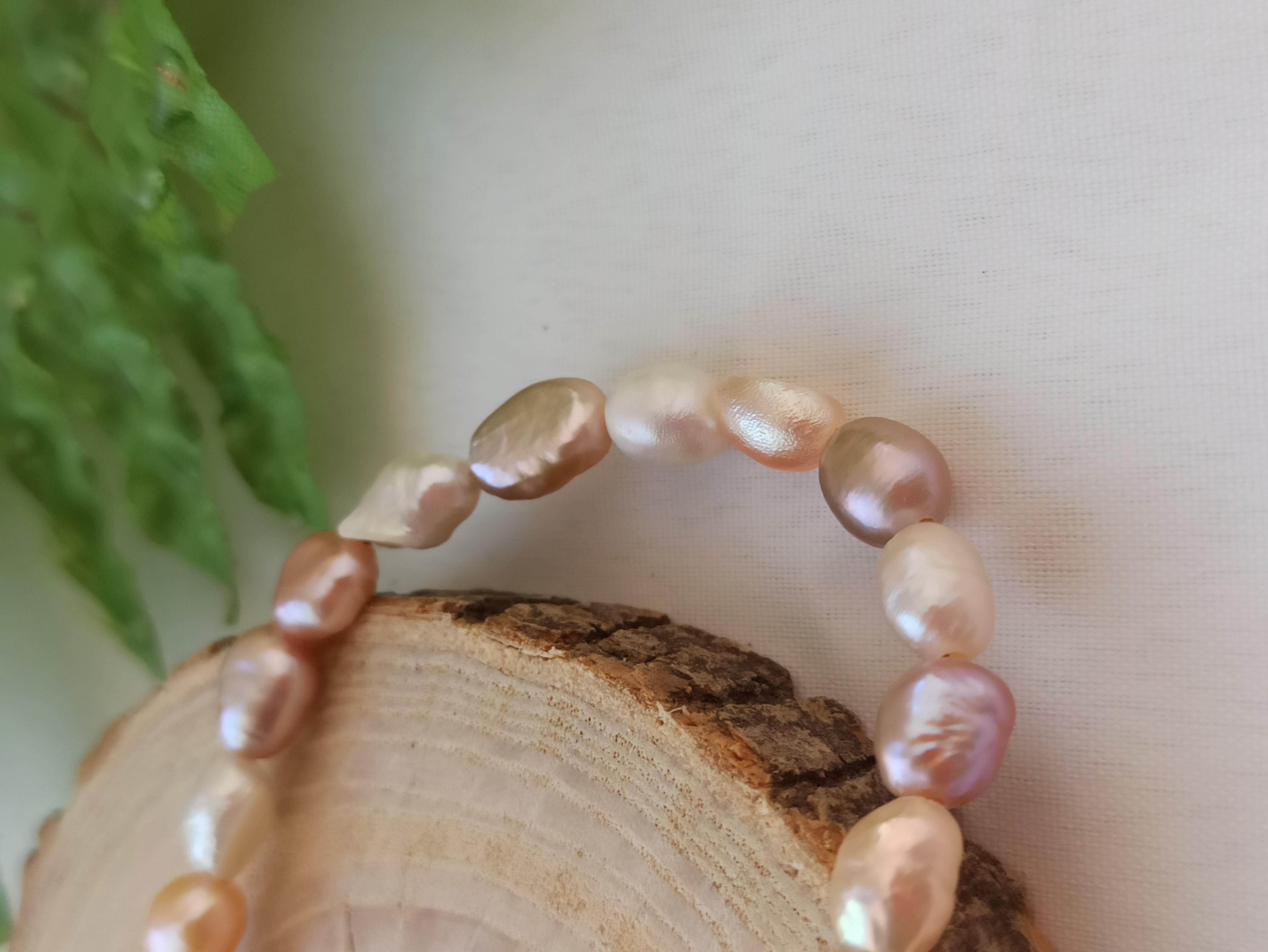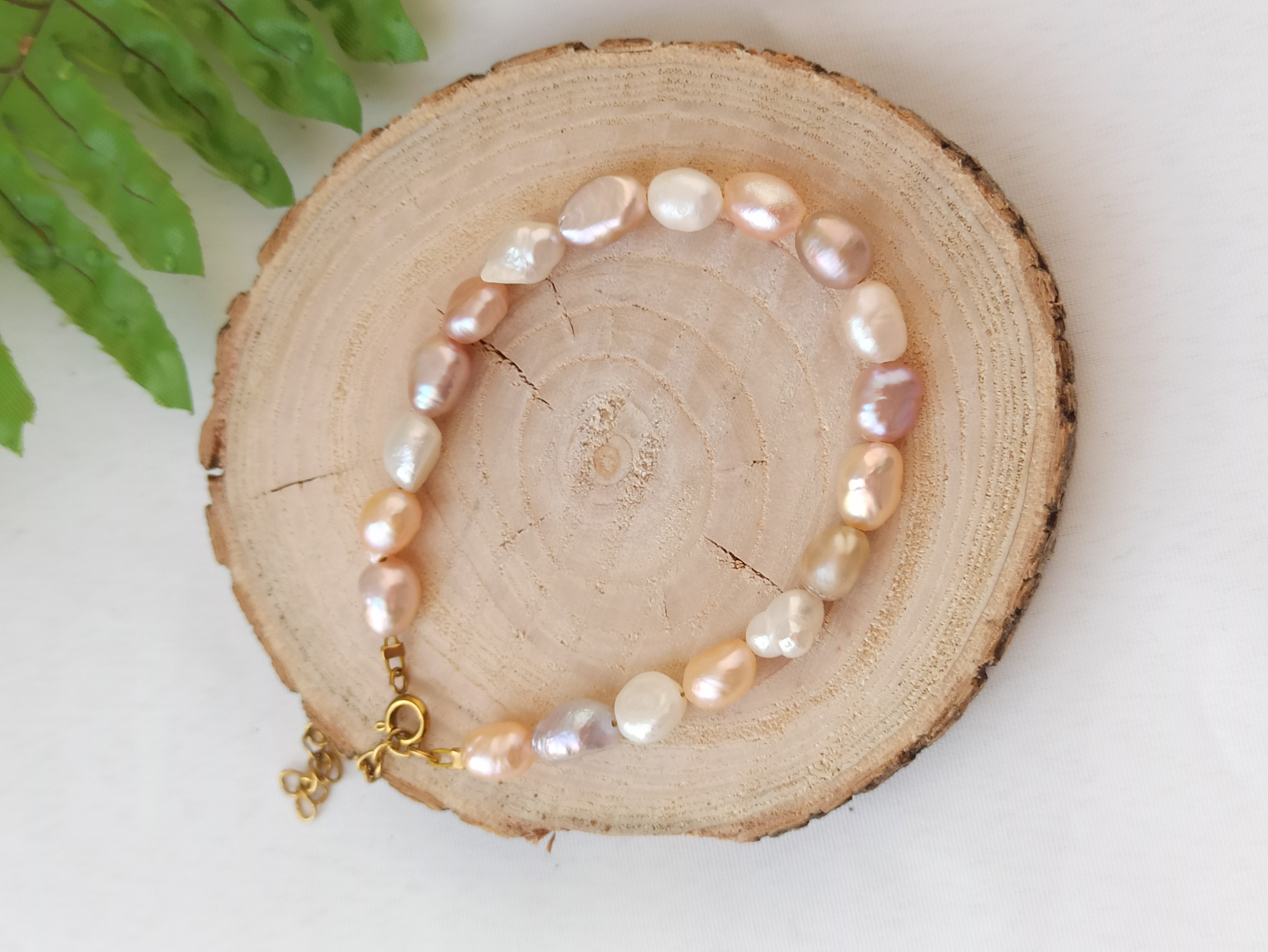 دستبند دستساز مروارید پرورشی باروک مولتی کالر، با متریال استیل، طول ۱۷ سانت و زنجیر سایز