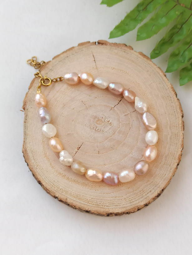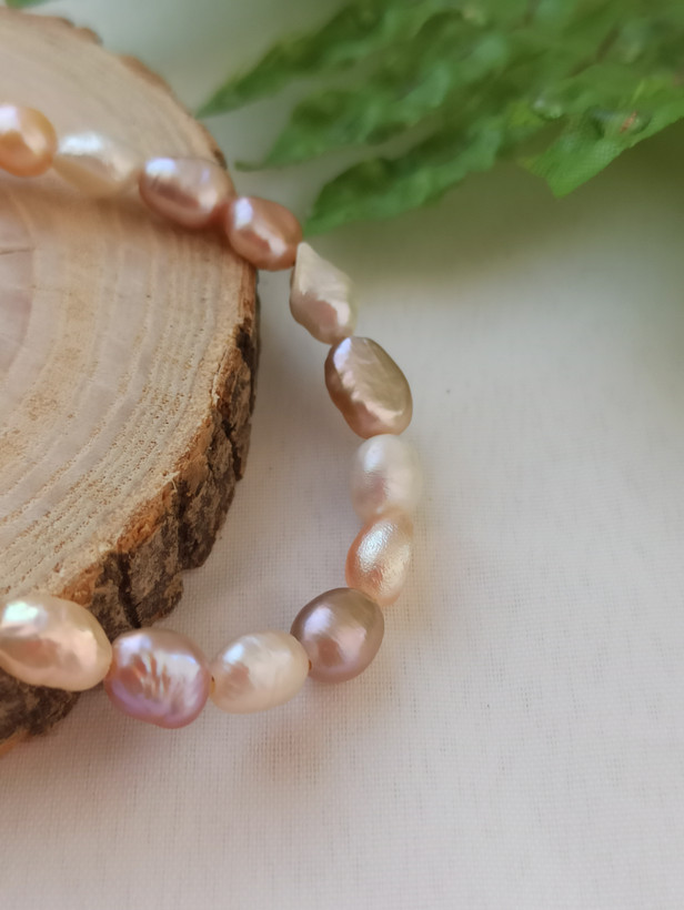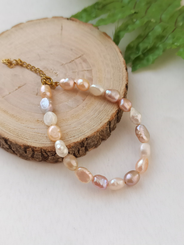 دستبند دستساز مروارید پرورشی باروک مولتی کالر، با متریال استیل، طول ۱۷ سانت و زنجیر سایز